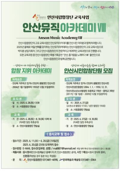 | ▲ 안산시립합창단, 정상급 전문가 참여 뮤직아카데미 Ⅷ 교육생 모집 |