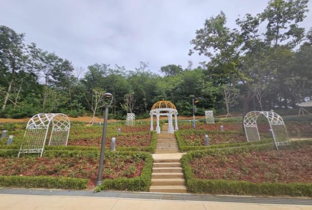 또한 맨발길 75m, 운동기구 8종, 파고라 2개소가 설치돼 운동과 휴식을 동시에 즐길 수 있는 공간이 마련됐다. 수국원와 장미원은 사계절 꽃과 향기를 제공하는 매력 넘치는 힐링 공간으로 자리잡을 전망이다.