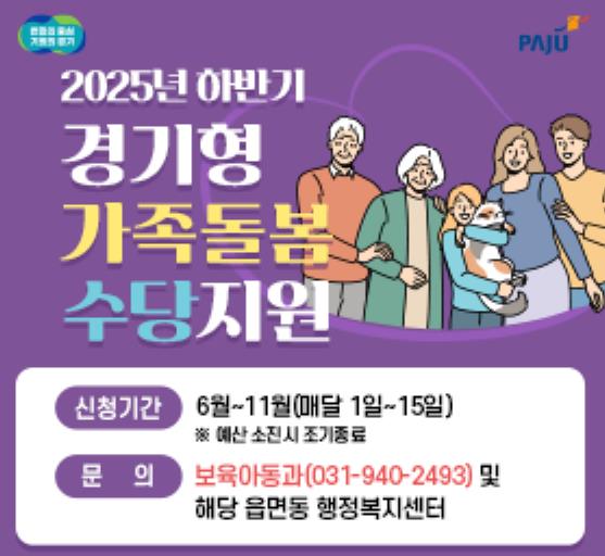 | ▲ 파주시,‘하반기 경기형 가족돌봄수당’6월 2일부터 신청 시작 |
