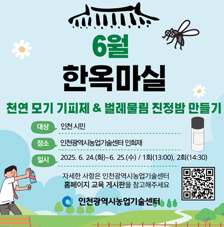 [무한뉴스=정승훈 기자] 인천광역시 농업기술센터는 오는 6월 24일부터 25일까지 이틀간 센터 내 전통문화체험교육관 ‘인희재’에서 6월 한옥마실을 운영한다고 밝혔다.