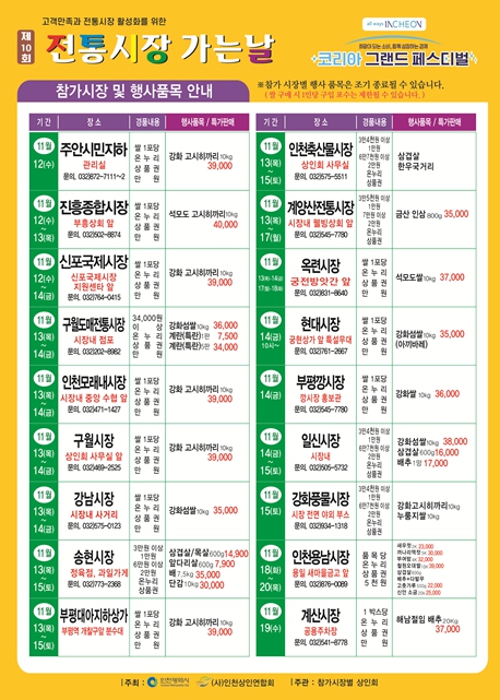 이번 행사는 (사)인천상인연합회(회장 서장열)가 주최하고 인천광역시(시장 유정복)가 후원하며 ‘인천 세일페스타’ 시기에 맞춰 관내 18개 전통시장에서 진행된다.