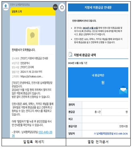 특히 지방세 환급 안내를 카카오 알림톡으로 제공해, 납세자는 카카오톡 화면에서 환급 금액 확인과 신청을 간편하게 처리할 수 있다.