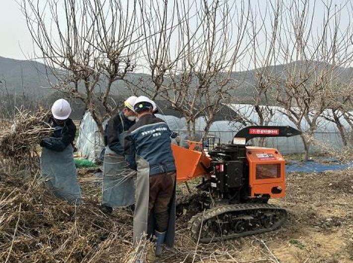 파쇄지원단은 산림 인접 농지와 영농부산물 처리가 어려운 취약계층 농가를 우선 지원하며, 마을을 직접 방문해 과수 잔가지, 고춧대 등의 영농부산물을 수거·파쇄한다.