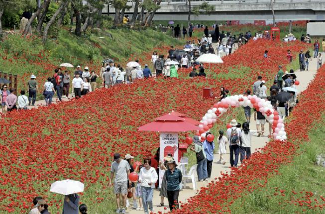 특히 동진천 수변에는 여전히 붉게 피어난 양귀비꽃이 큰 인기를 끌고 있으며, 괴산군은 당분간 양귀비꽃의 개화 상태가 유지될 것으로 보고 있다.