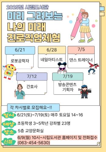 | ▲ 2025년 군산시립도서관 미리 그려보는 나의 미래 어린이 진로 직업체험 프로그램 운영 |