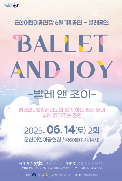 체험형 발레공연 ‘발레·조이’는 6월 14일 11시, 14시 총 2회 공연으로 진행되며, 사전 예약은 6월 4일 오전 10시부터 티켓링크를 통해 가능하다.