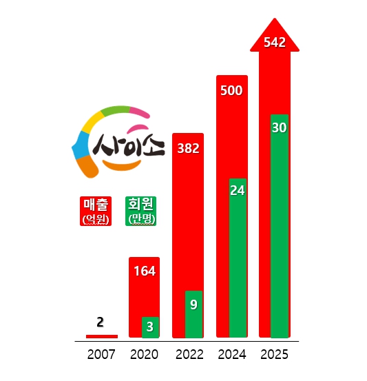 | ▲ 사이소 매출 및 회원 증감 그래프 |