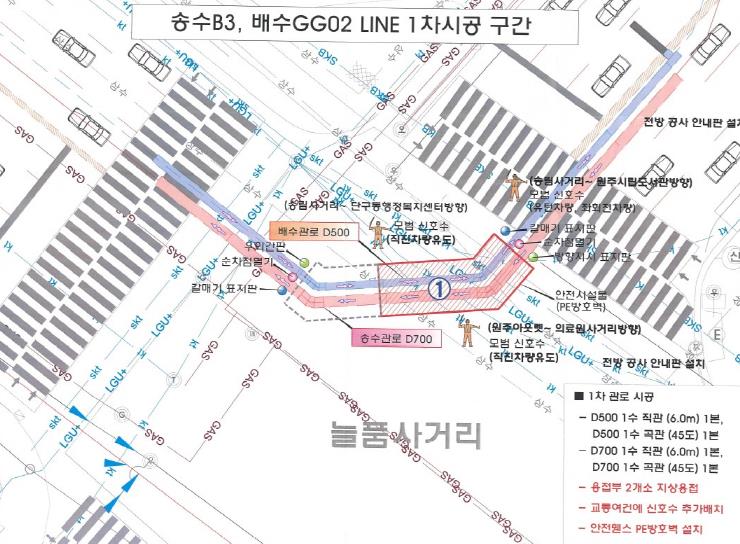 [무한뉴스=정민정 기자] 원주시상하수도사업소는 태장배수지 설치사업의 일환으로 진행되는 늘품사거리 교차로 구간 송배수관로 설치공사를 야간에 실시한다.