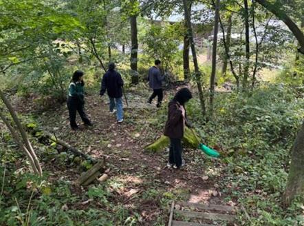 | ▲ 1일 국립횡성숲체원 직원들에 의해 넘어짐 사고 발생 우려 지역에 대해 점검 및 조치하고 있다. 한국산림복지진흥원 국립횡성숲체원 제공 |