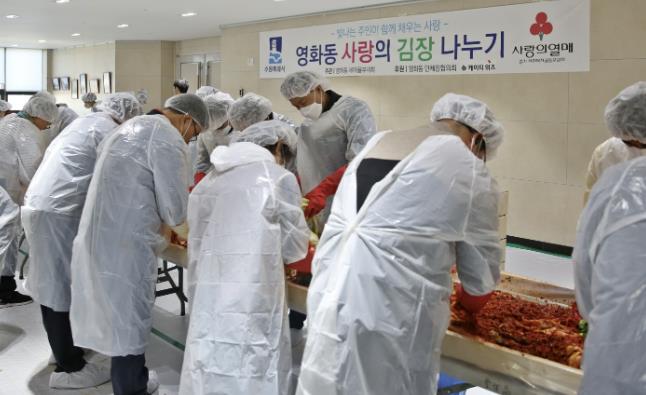 영화동 새마을부녀회, 새마을지도자협의회 등 단체원 50여 명이 한마음 한뜻으로 참여해 양념을 버무리며 김장김치를 담가 포장했다. 정성으로 버무려진 김장김치는 130여 세대에 전달되어 추운 겨울을 따뜻하게 맞이할 수 있도록 온기를 더했다.