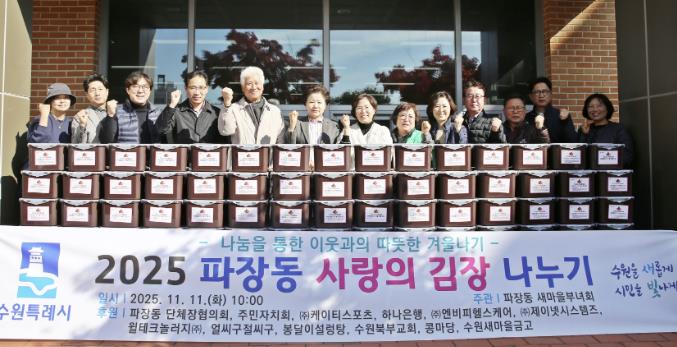 장인영 파장동장은 “어려운 이웃을 위해 정성껏 김장을 준비해주신 새마을부녀회와 여러 단체 및 후원해 주신 분들께 감사드리며 파장동의 사랑과 정성이 잘 전달될 수 있도록 하겠다”고 전했다.
