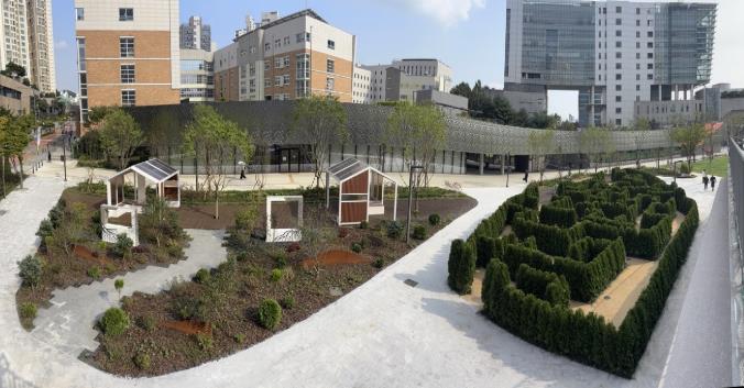 큰숲정원은 기존 생육 중인 대왕참나무 하부에 아름다운 정원을 조성해, 나무 그늘 아래에서 아름다운 경관과 함께 운동과 휴식을 즐길 수 있는 장소로 탈바꿈됐다.