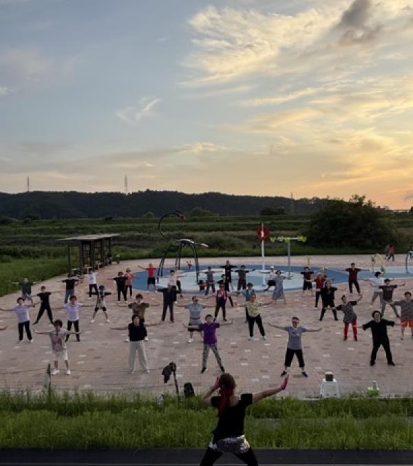 ‘문산노을길 달빛 운동교실’은 직장인과 가족 단위 시민이 함께할 수 있는 ‘야간 라인댄스 프로그램’으로 진행됐다. 음악에 맞춘 전신 운동으로 심폐 지구력과 근지구력 향상에 도움을 주며, 퇴근 후 부담 없이 참여할 수 있다는 점에서 큰 호응을 얻었다. 총 24회 운영되는 동안 약 1,000명이 참여했으며, 대부분이 높은 만족도를 보였다.