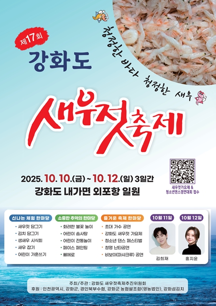 [무한뉴스=정승훈 기자] 인천광역시는 제17회 강화도 새우젓 축제가 오는 10월 10일부터 12일까지 3일간 강화군 내가면 외포항 일원에서 열린다고 밝혔다.