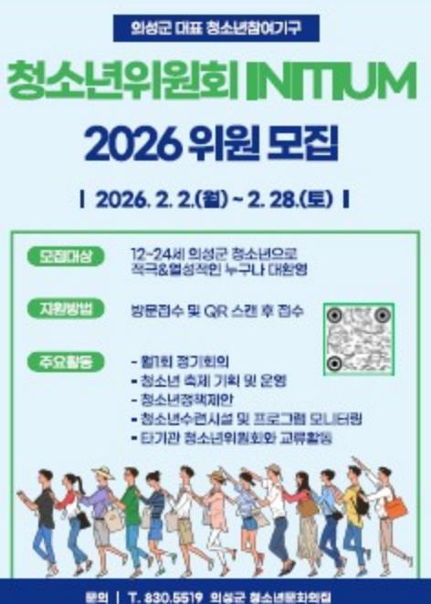 [무한뉴스=최진수 기자] 의성군은 청소년의 자치권 확대와 참여권 보장을 위해 ‘2026 의성군청소년위원회’ 신규 위원 20명을 모집한다고 밝혔다.