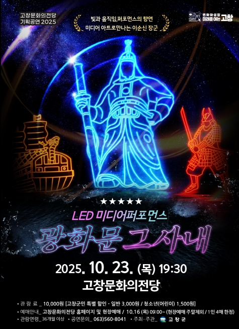 [무한뉴스=정민정 기자] 고창군문화의전당이 오는 23일 저녁 7시30분 ‘LED 미디어 퍼포먼스-광화문, 그 사내’ 공연을 무대에 올린다.