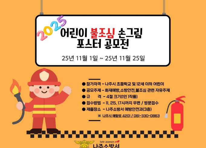 | ▲ 나주소방서, 2025년 어린이 불조심 포스터 공모전 개최 |