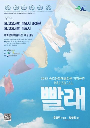 [무한뉴스=정민정 기자] 속초시는 시민과 관광객에게 따뜻한 감동을 전하는 뮤지컬 ‘빨래’를 오는 8월 22일 오후 7시 30분, 23일(토) 오후 3시에 속초문화예술회관 대공연장에서 선보인다.