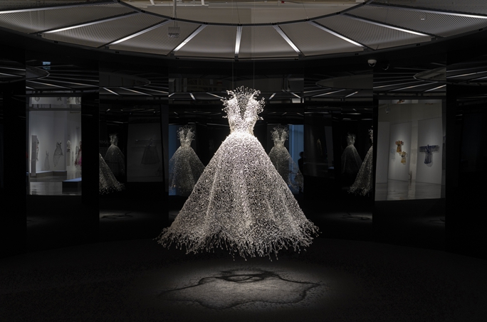 특히 3층 전시장 도입부 'Dreaming' 공간이 이번 전시를 대표하는 화제의 공간이자 주요 포토스폿으로 큰 인기를 끌고 있다. 어둠 속 중심에 전시된 ‘백매(白梅)’ 드레스는 검은 거울과 조명 연출을 통해 몽환적인 장관을 만들어내며 관람객의 발길을 붙잡고 탄성을 자아낸다.