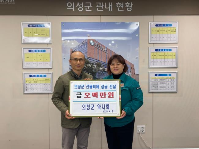 이에 김주수 의성군수는 “지역의 어려움에 함께해주신 의성군약사회에 깊이 감사드린다”라며, “기탁해주신 성금은 피해 주민들의 일상 회복을 위해 소중히 사용하겠다”라고 전했다.