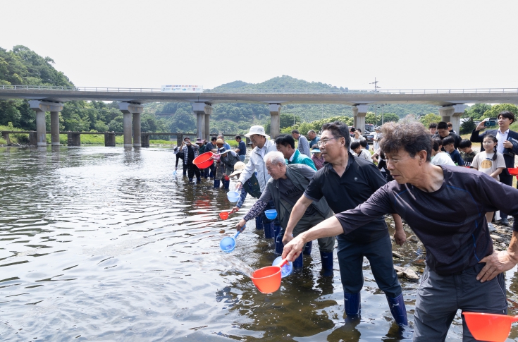 | ▲ 대치면 까치내에서 내수면 수산종자를 방류하고 있는 모습 |