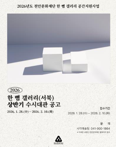 [무한뉴스=정민정 기자] (재)천안문화재단은 오는 28일부터 상반기 한 뼘 갤러리 수시대관 공모 접수를 받는다고 27일 밝혔다.