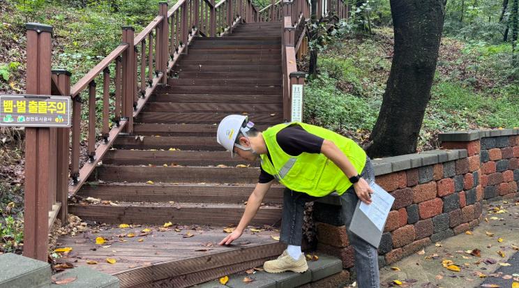 | ▲ 천안도시공사가 태조산공원에서 안전점검을 실시하고 있다. |