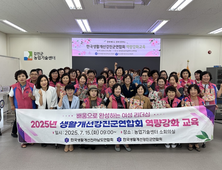 [무한뉴스=정민정 기자] 강진군이 생활개선강진군연합회 회원 38명을 대상으로 지난 15일 농업기술센터 소회의실에서 역량강화 교육을 실시했다.