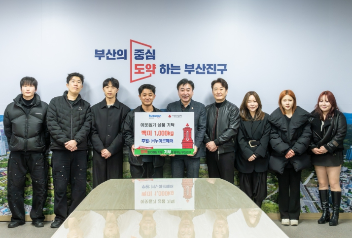 [무한뉴스=최진수 기자] 부산 부산진구은 1월 14일, ㈜누아르헤어(총괄대표 송강우)로부터 백미 1,000kg를 기탁받았다고 전했다.
