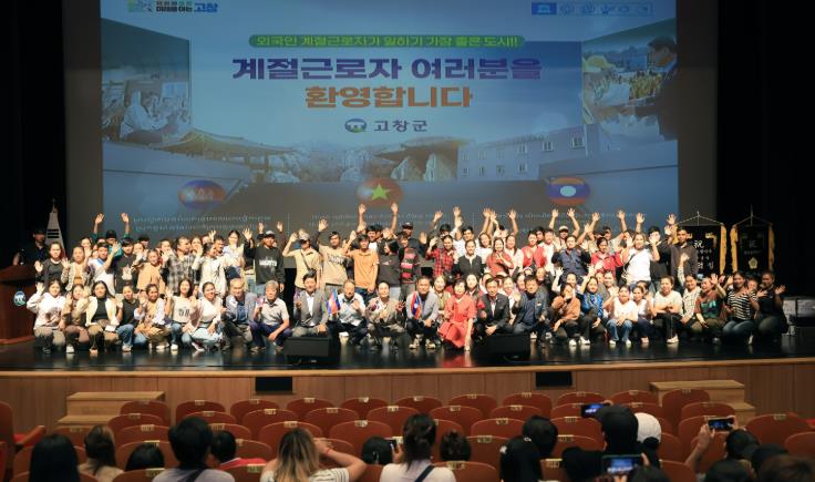 고창군은 ▲언어소통 도우미 ▲계절근로자 전문관 배치 ▲작은영화관 무료영화관람 ▲무료건강검진 ▲사랑의 옷 기부행사 ▲삼겹살 파티 ▲희년의료공제 가입 ▲무료관광•문화체험 등 다양한 정책을 펼치고 있다.