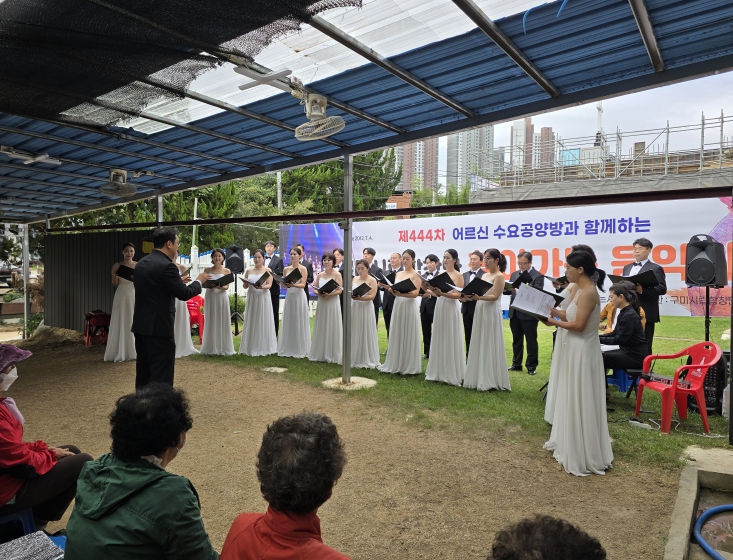 [무한뉴스=최진수 기자] 구미시립합창단은 지난 22일 지산동 구미외국인주민센터에서 열린 제‘444회 수요공양 어르신 반찬 나눔’ 행사에 참여해 따뜻한 음악 봉사활동을 펼쳤다.