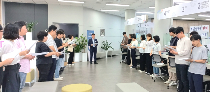 전 직원이 함께 친절 구호를 외치며 민원인을 먼저 생각하는 마음가짐을 다시 한 번 되새기고 있다.