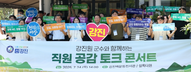 이번 행사는 강진군으로부터 주거비 지원을 받은 직원 35명이 함께 강진군의 청렴 정책과 후생복지 제도를 공유하고, 자유로운 분위기 속에서 청렴 실천 의지를 나누는 소통의 자리가 됐다.