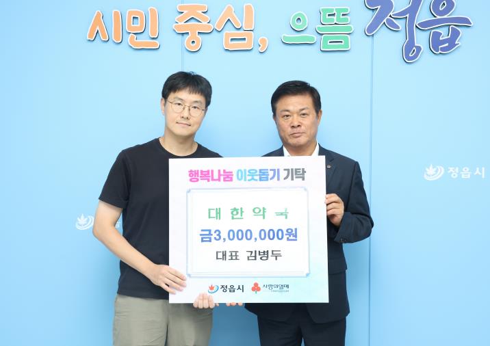 | ▲ 대한약국 김병두 대표, 정읍시에 300만원 기탁…취약계층 지원 앞장 |
