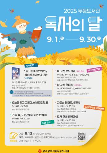 [무한뉴스=정민정 기자] 광주시립도서관(무등·사직·산수·디지털정보)은 9월 ‘독서의 달’을 맞아 시민과 함께하는 다양한 독서문화 행사를 진행한다.
