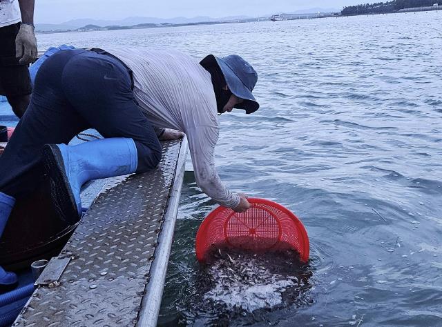 | ▲ 지난 5일, 압해읍 해역에서 조피볼락 14만 마리를 긴급 방류했다. |