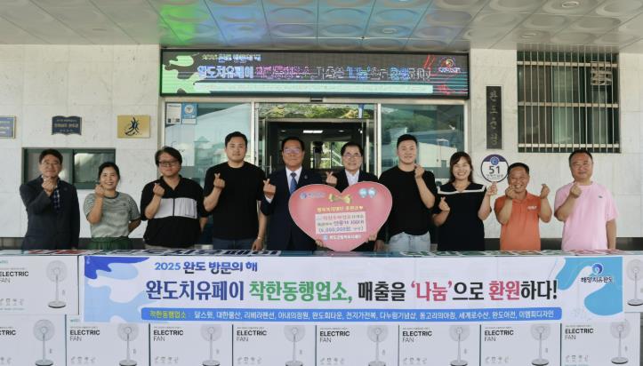 [무한뉴스=정민정 기자] 완도군이 ‘2025 완도방문의 해’를 맞아 추진 중인 ‘완도 치유 페이’가 관광·경제 활성화에 도움이 됨은 물론 이웃을 향한 나눔으로까지 이어져 지역사회에 온기를 더했다.