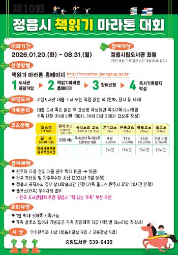 정읍시립도서관, 독서 마라톤 개최… 완주하면 내년 대출 2배