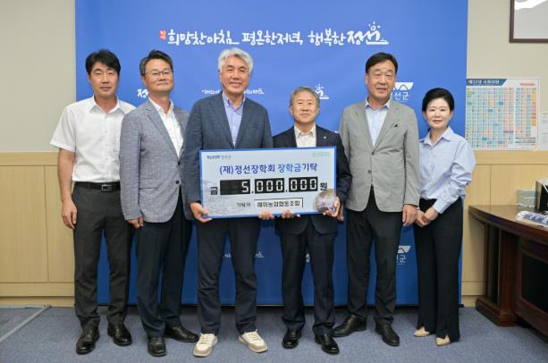 [무한뉴스=정민정 기자] 예미농업협동조합에서 29일 (재)정선장학회를 방문해 지역인재 육성을 위해 써달라며 최승준 정선군수에게 장학금 500만원을 기탁했다.