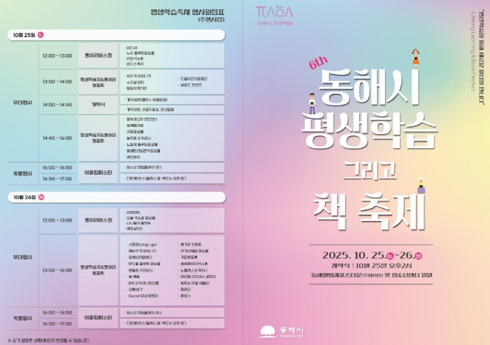 [무한뉴스=정민정 기자] 동해시는 오는 10월 25일부터 26일 이틀간 열리는 '제16회 동해시 평생학습 그리고 책 축제'에서 특별한 시민 참여형 이벤트가 펼쳐진다.