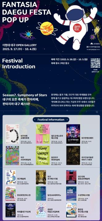 [무한뉴스=최진수 기자] 2025 판타지아대구페스타 가을 축제가 일곱 번째 시즌(Season7. Symphony of Stars 별들의 노래)을 맞아, 대구를 대표하는 15개 축제를 소개하는 팝업 전시와 함께 다양한 이벤트로 시민들을 찾아간다.