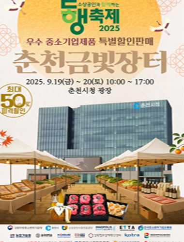 춘천금빛장터는 2025 동행축제와 연계한 지역 상생 소비 축제로, 강원지방중소벤처기업청을 비롯한 18개 유관기관이 힘을 모아 마련됐다. 이번 행사는 추석 명절을 앞두고 시민들에게 합리적인 소비 기회를 제공하고, 도내 중소기업 제품의 판로 확대를 지원하는 데 큰 의미가 있다.