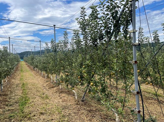 특히 수관 내부까지 광 투과율을 높여 과실의 착색과 당도를 향상시키고 통풍 개선과 약제살포 효율 증가로 병해충 관리가 용이하다.