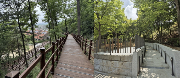 특히 산지형 공원 특성상 진입이 어려웠던 보행약자(장애인, 노인, 유모차 등)의 공원 접근성을 높이기 위한 무장애 데크길 조성이 핵심으로 진행됐다.