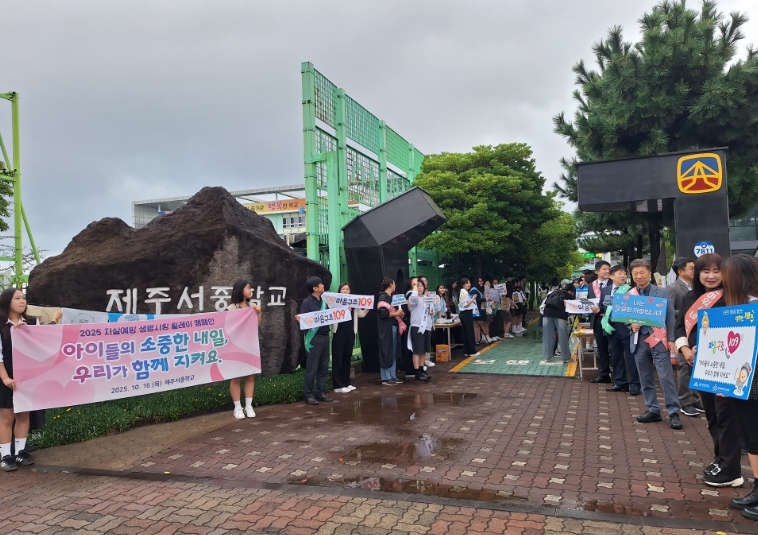 [무한뉴스=정승훈 기자] 제주도교육청 제주서중학교는 16일 오전 8시부터 8시 30분까지 아침 등교 시간을 활용하여, 제주특별자치도교육청과 함께하는 ‘2025 자살예방 생명사랑 릴레이 캠페인’을 진행했다.