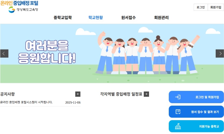 | ▲ 경북교육청, 2026학년도 중입배정 원서 온라인 접수 시작 |
