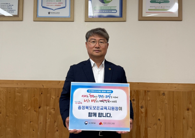 [무한뉴스=정민정 기자] 보은교육지원청 전병일 교육장이 30일 보건복지부와 한국보건복지인재원이 공동 주관하는 ‘인구문제 인식개선을 위한 릴레이 캠페인’에 참여했다.