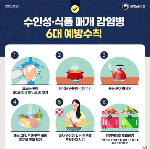 | ▲ 수인성·식품 매개 감염병 6대 예방수칙 |