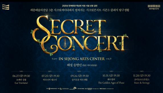 최대원 공연사업실장은 “올해 시크릿콘서트는 매회 악기를 중심으로, 음악에 스며든 이야기와 감정을 관객이 더욱 가깝게 느낄 수 있도록 기획했다”며, “와인 한 잔의 여유와 함께, 클래식의 깊은 울림을 경험하시길 바란다”고 전했다.