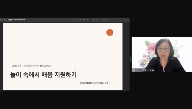 이 날 교육은 △의미 있는 놀이 발견 및 지원하기 △영유아 놀이에서 배움 읽기내용으로 교육이 진행됐다.